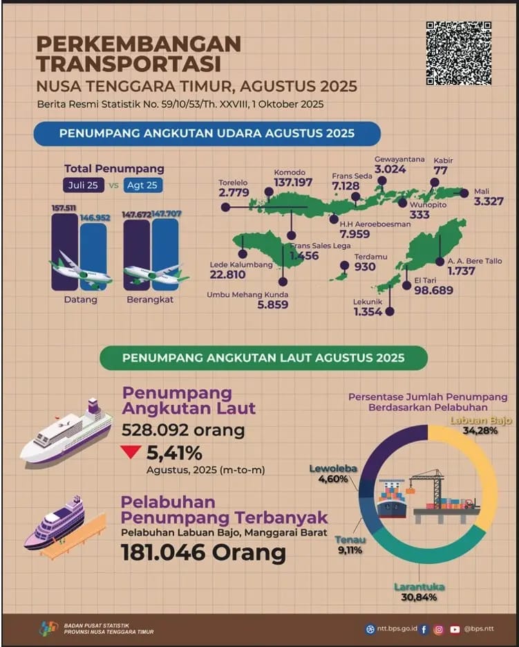 KUPANG. NUSA FLOBAMORA- Badan Pusat Statistik ( BPS) Provinsi NTT merilis, jumlah penerbangan angkutan udara pada Agustus 2025 naik 3,73…