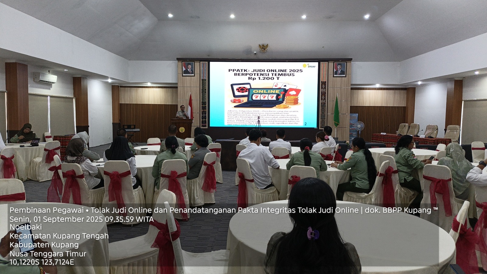 Kegiatan ini dilakukan sebagai bagian dari upaya BBPP Kupang dalam mendukung program pemerintah untuk memberantas judi online di kalangan Aparatur Sipil Negara (ASN) dan seluruh pegawainya.